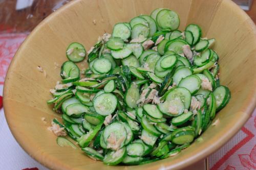 然後我切了一堆黃瓜要做鮪魚沙拉 這是我媽咪教我的唷 哈