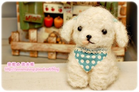 綁上蕾絲領巾 白色貴賓狗 就完成啦