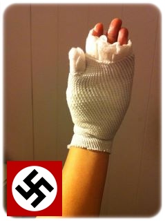 最近 我的手都在休息中因為 星期日晚上被滾燙的100度熱水給燙到手了所以毛線編織暫時也休息了 現在打字靠右手跟左手中指今天發現四天後居然才起水泡 很昏倒又跑去看醫生左手皮膚現在又熱又癢 看來要效忠希特勒好一陣子了